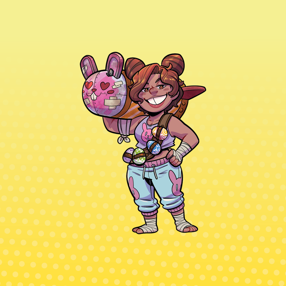 Esther is hard to hit and she hits hard. Her weapons are limited, but they pack a big punch, and her specials are focused on being nimble and evading or deflecting damage.